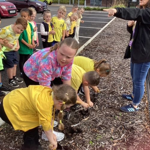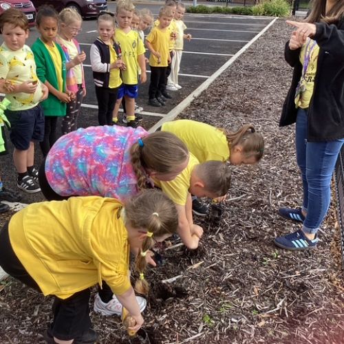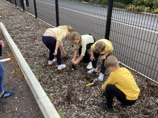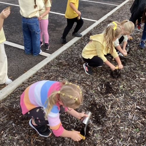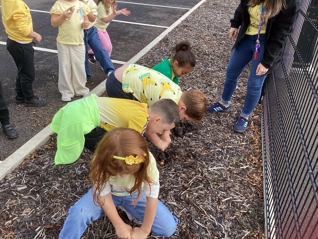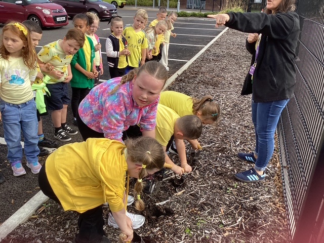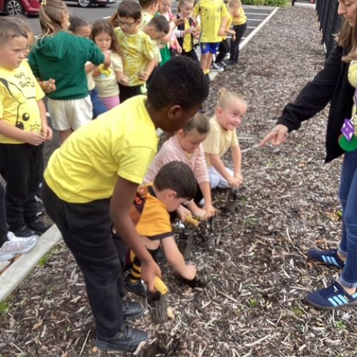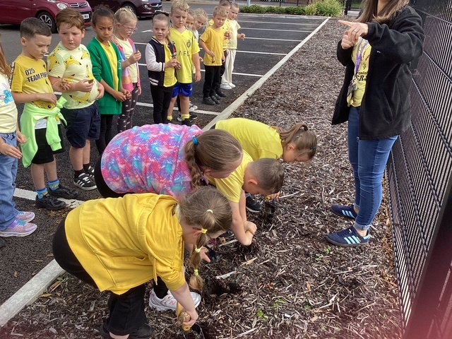 'Hello Yellow' day! We planted daffodil bulbs so we can watch them grow. They will remind us of 'World Mental Health Day' and the importance of looking after our mental health.